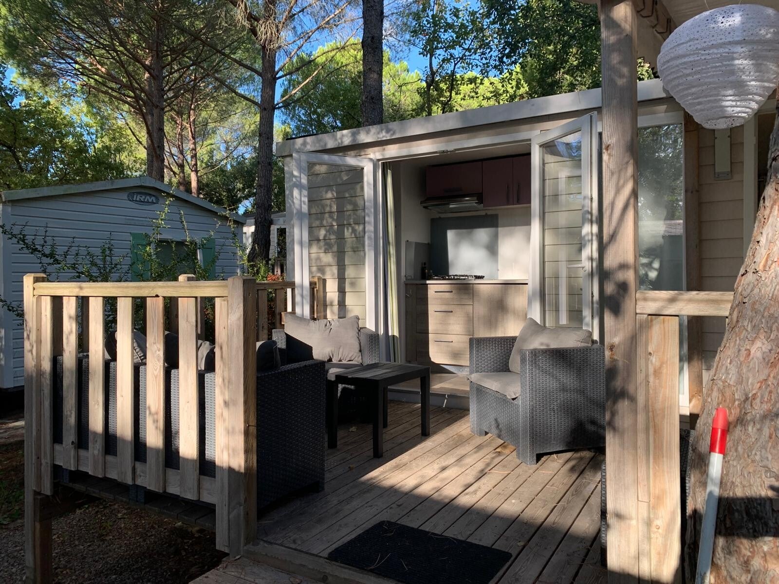 Onze mobile home onderscheidt zich door de prettige en vooral rustige ligging. Stap naar buiten en plof neer in een gezellig loungehoekje op het terras, waar je zowel in de zon als in de schaduw kunt zitten. En ook al heb je buren, door de ligging en opzet voelt het niet alsof ze op je bord kijken.